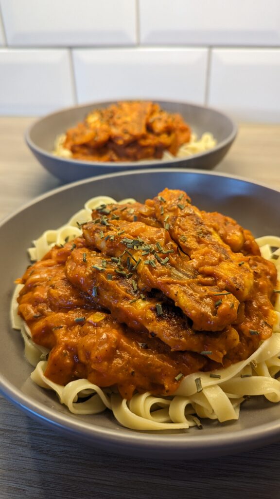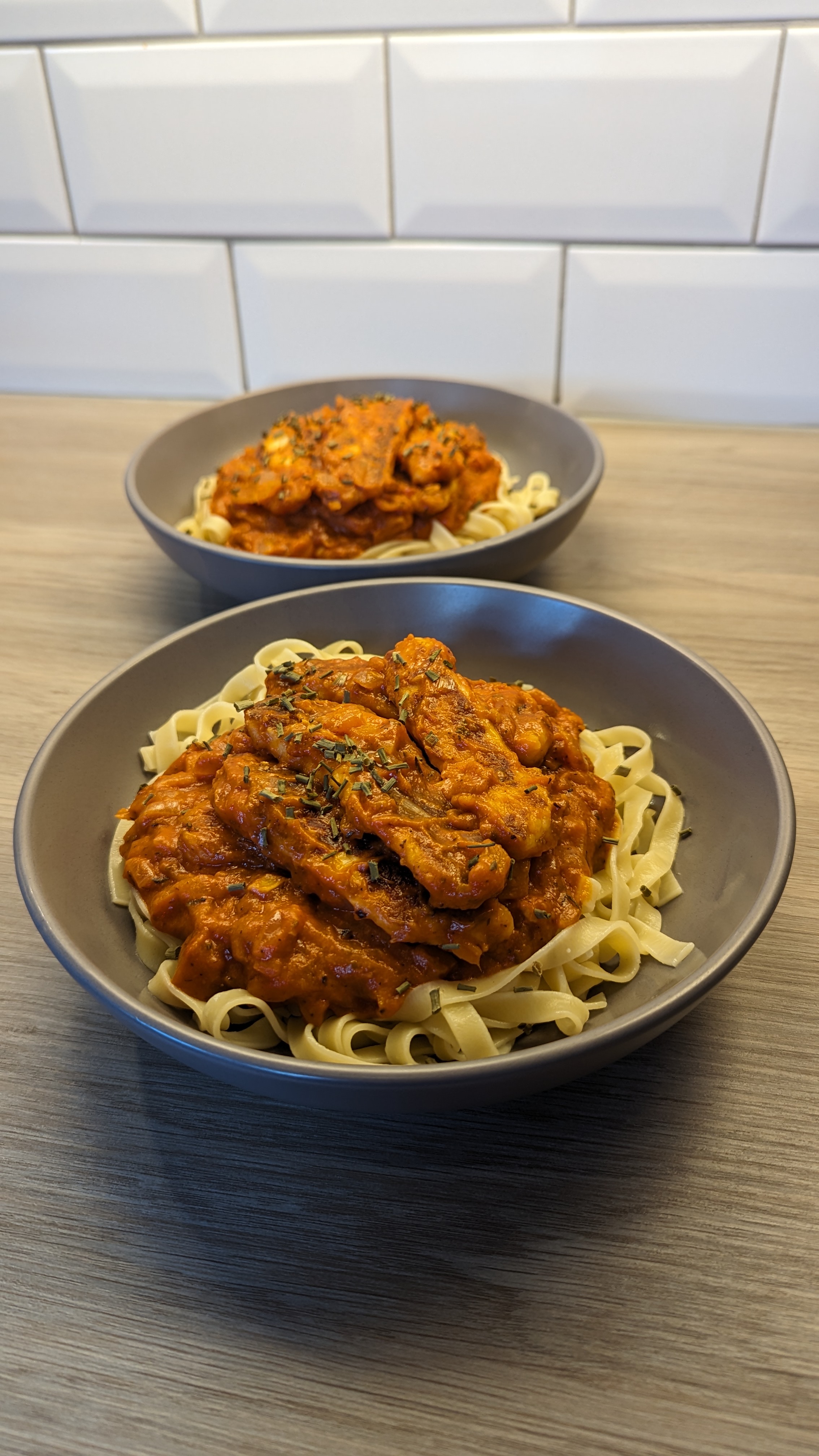 Crispy Halloumi in a Tomato and Mozzarella Sauce with Tagliatelle