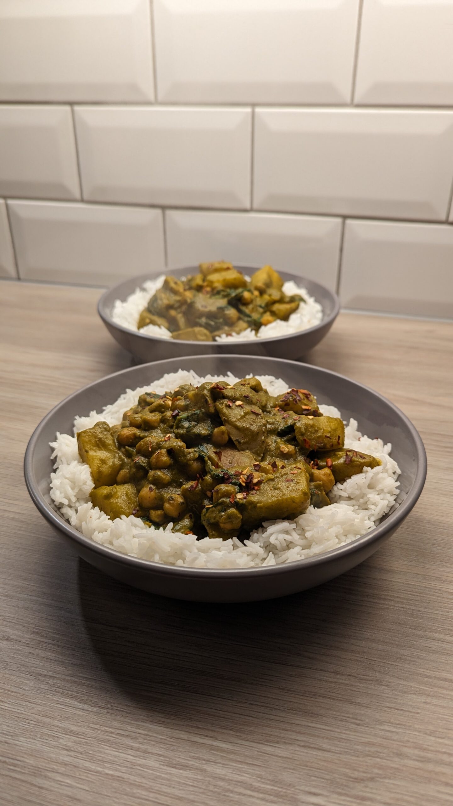 Indian Green Potato, Chickpea and Spinach Curry