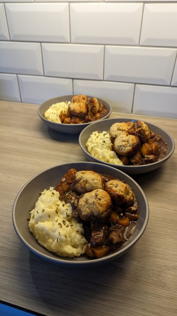 Pork Belly Stew, Garlic Mash and Sage and Onion Dumplings