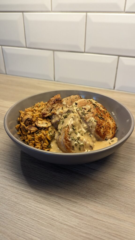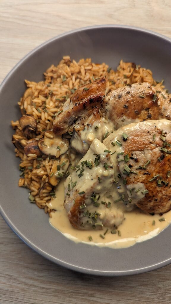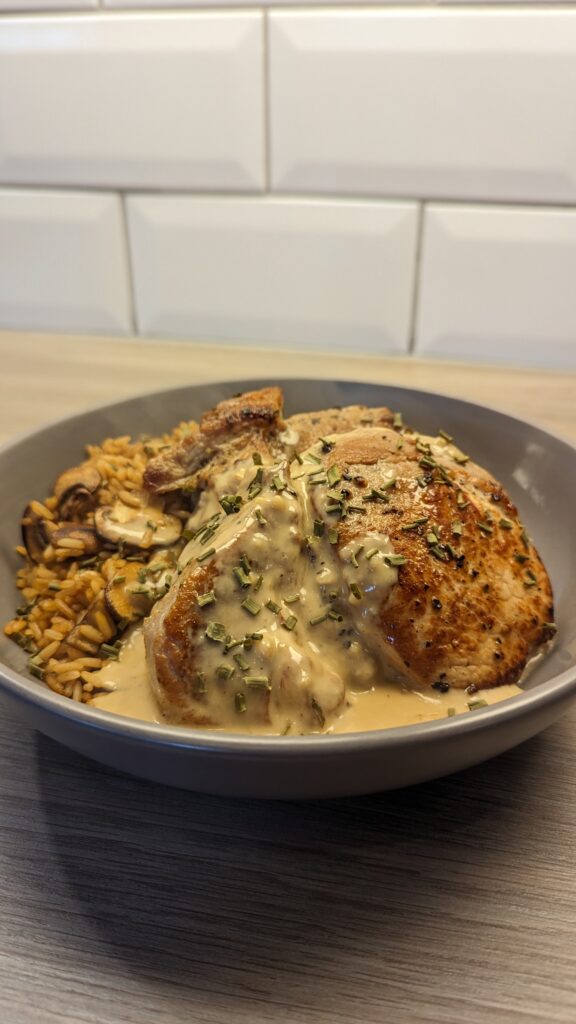 Pork Loin Steak and Mushroom Rice with a Mustard Sauce!