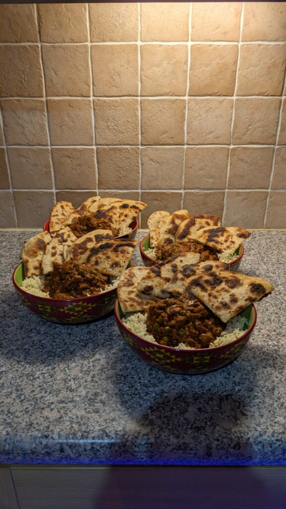 Boxing Day Beef Keema and Cumin Rice with Garlic Flat Breads