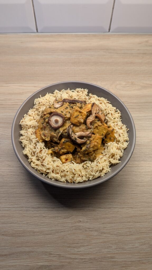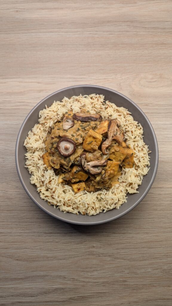 Mushroom and Tofu Coconut Curry with Cumin Rice