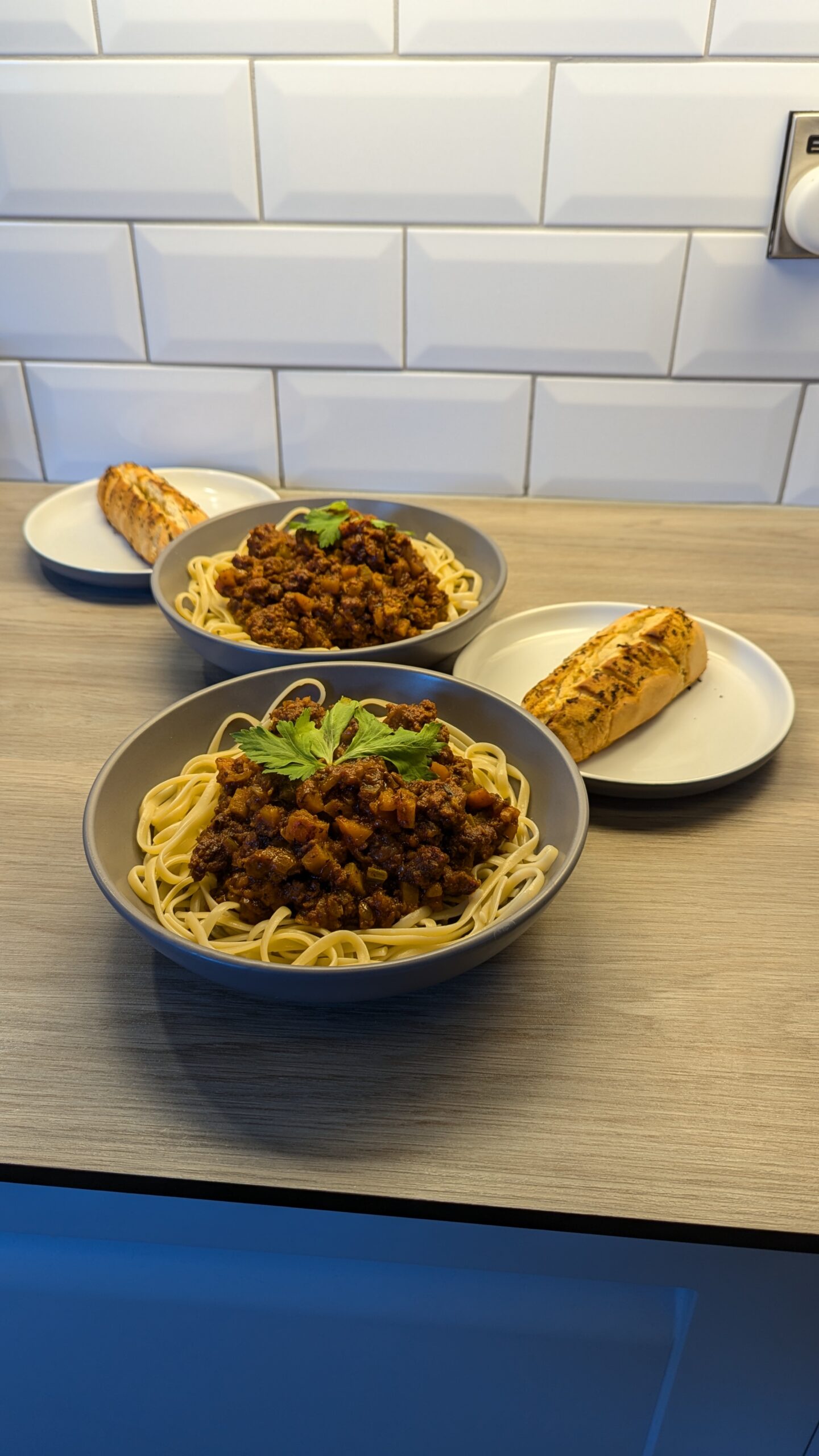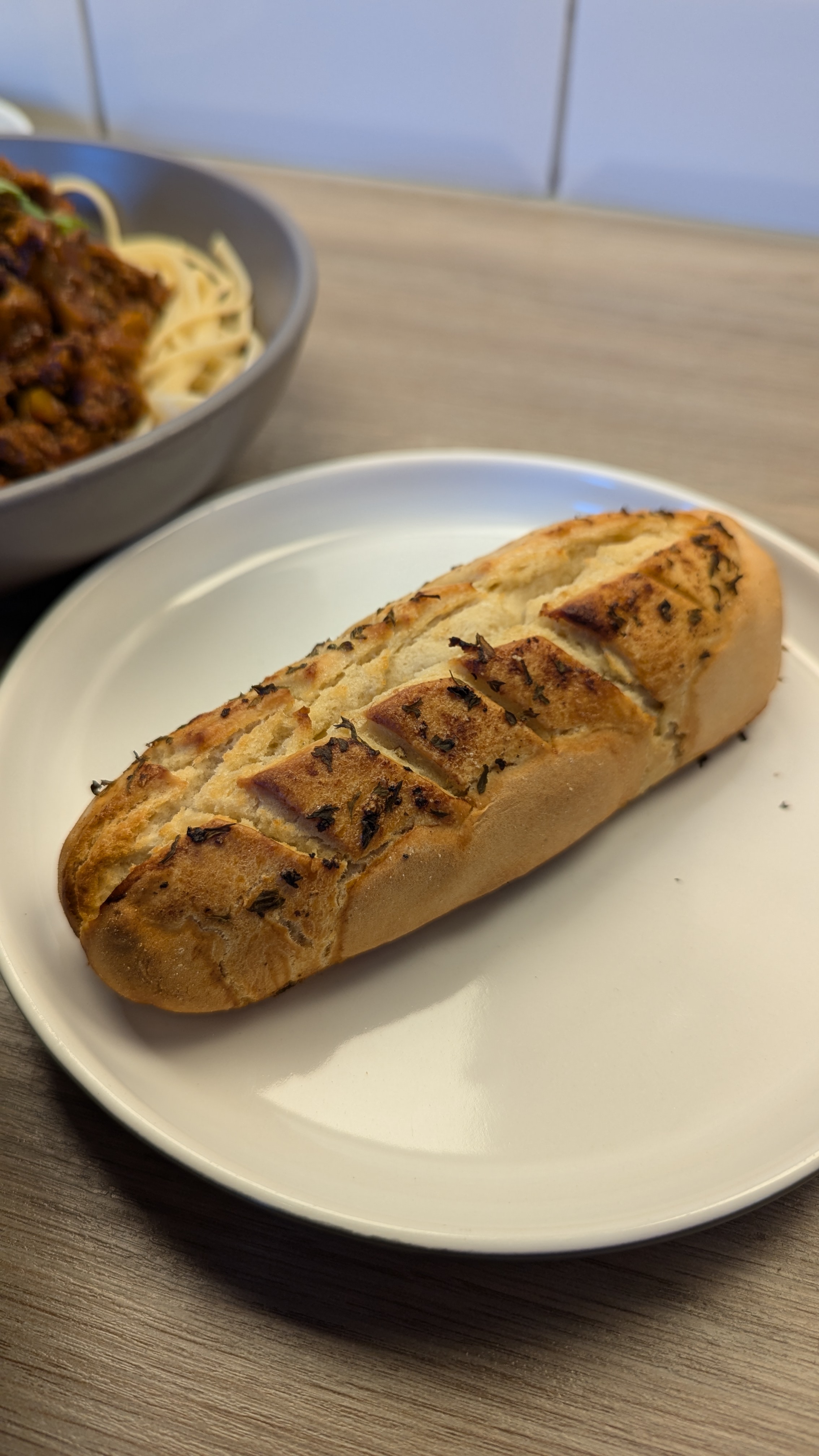 Red Wine Bolognese with Yeast Free Garlic Baguettes