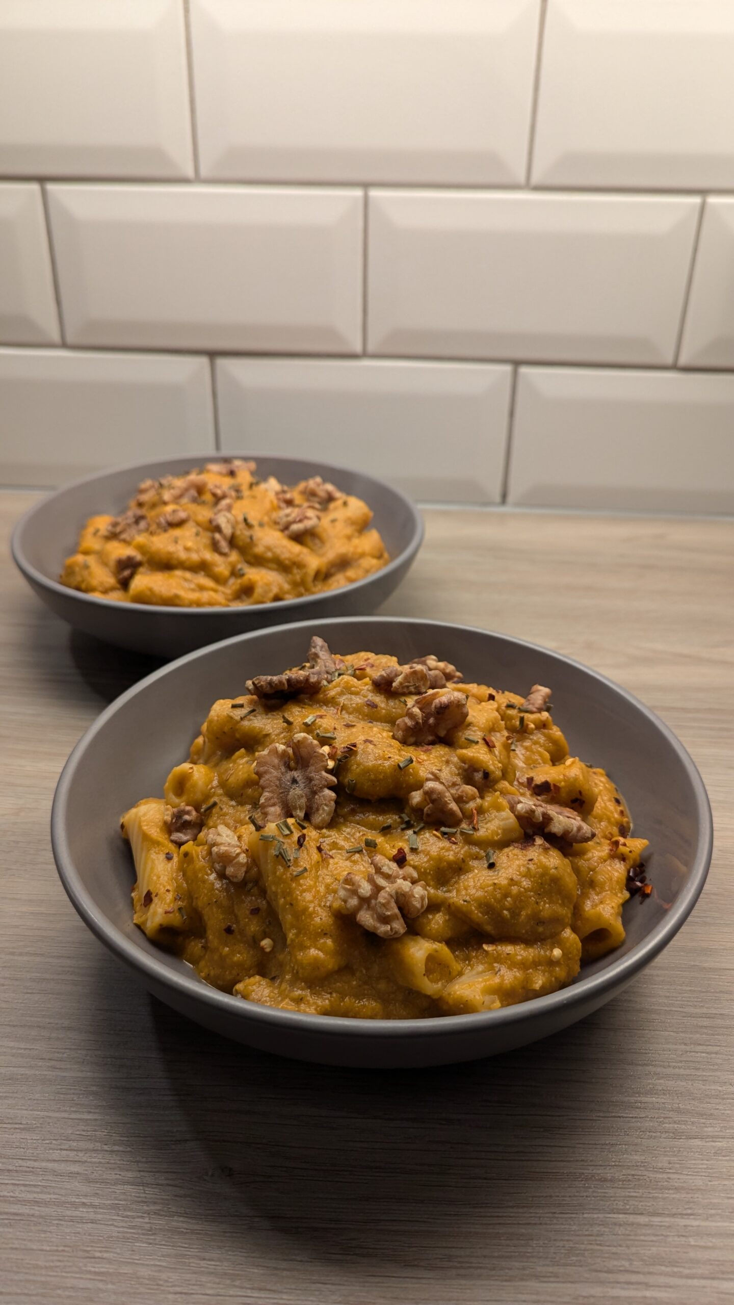 Roasted Butternut Squash and Cottage Cheese Rigatoni with Roasted Walnuts