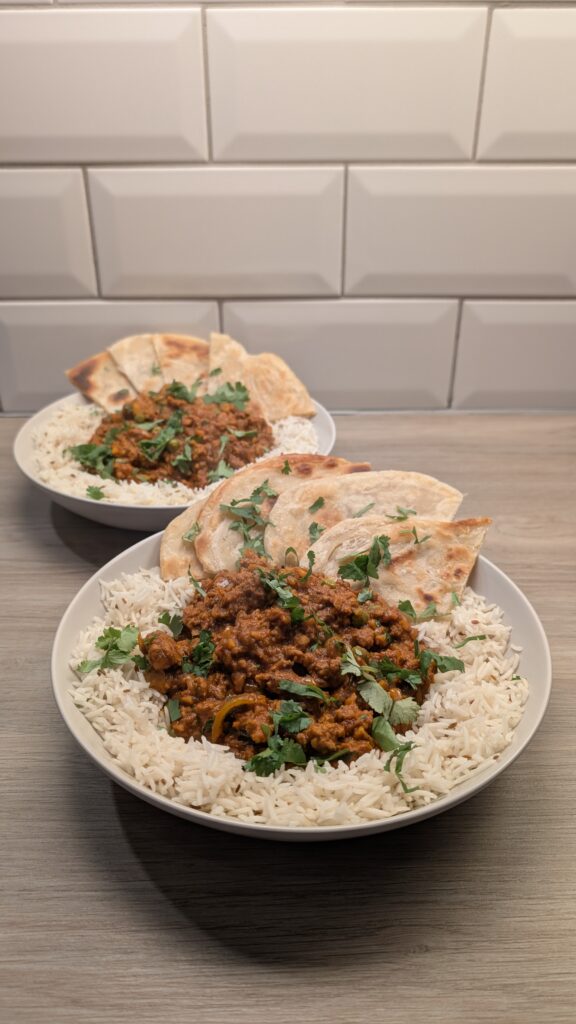 Lamb Keema and Cumin Rice with Paratha