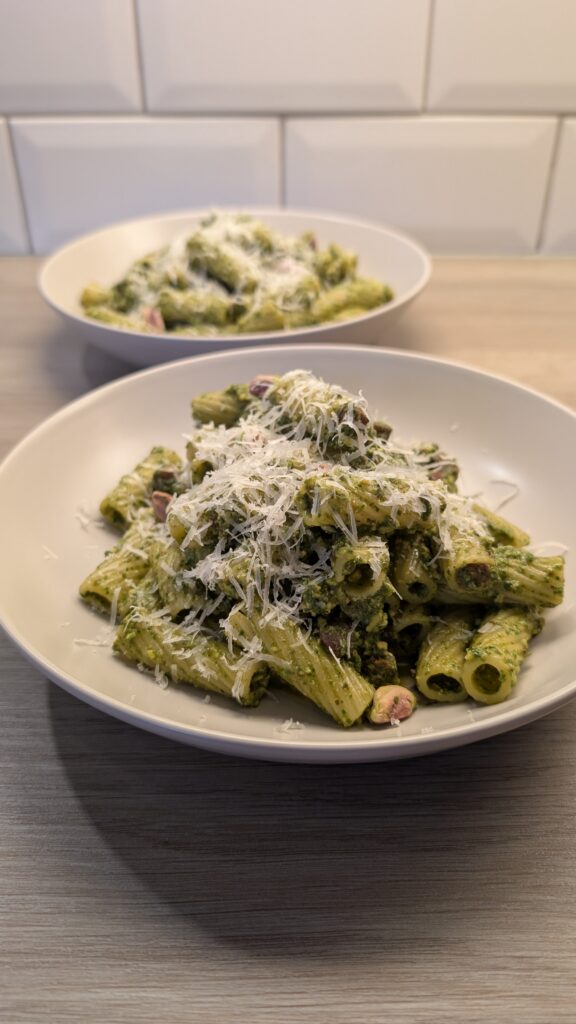 Pistachio and Spinach Pesto Chorizo Rigatoni