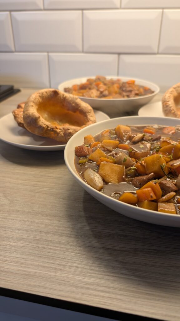 Pork Belly Stew with Yorkshire Puddings