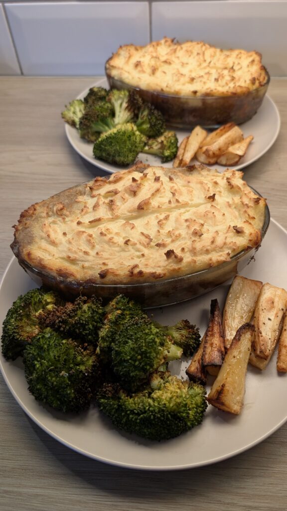 Shepherd’s Pie and Roasted Parsnips and Broccoli