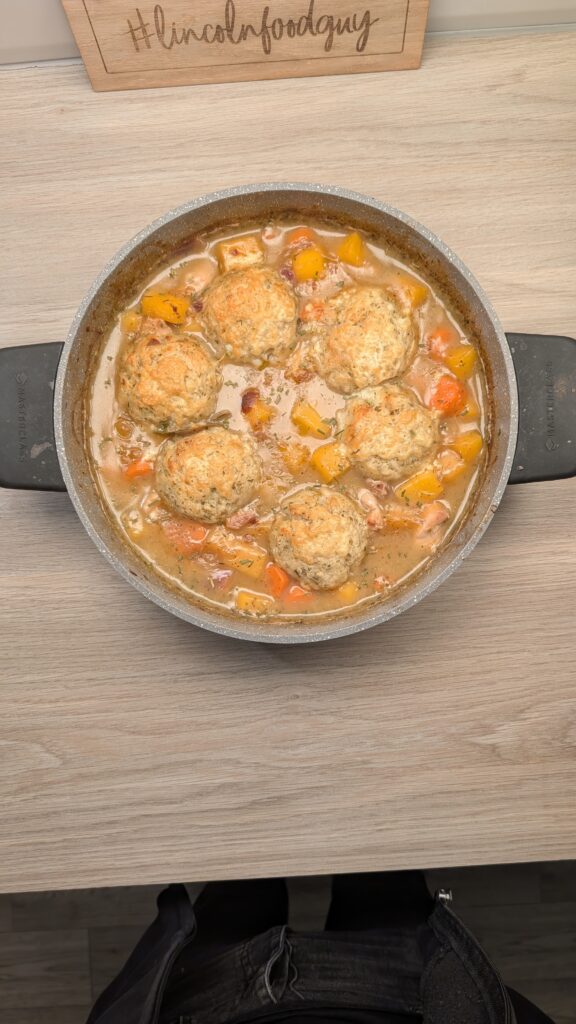 Chicken Casserole with Cheddar and Parsley Dumplings